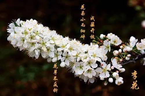 李花成簇開放,花朵小而細碎,花瓣窄。