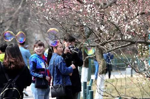 ▲ 3月18日,中山公園梅花開放,吸引眾多游人前來參觀。