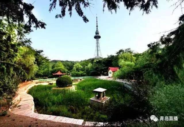 從櫸林公園進去,一路爬山,不到十分鐘就到了塔下。圍繞塔一圈都可以看青島美景。