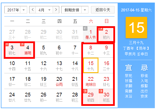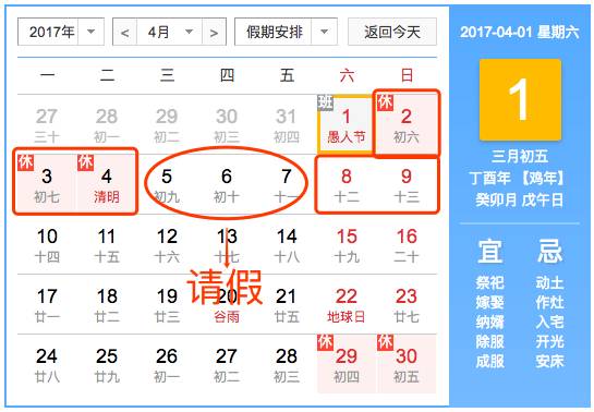 4月份可以休息11天!