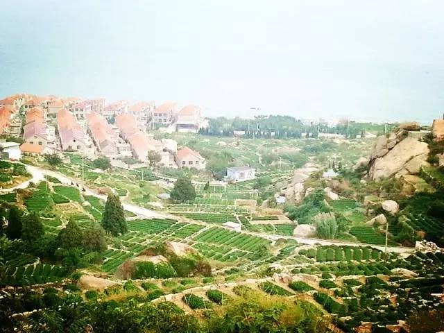 長嶺村,位于嶗山下清宮到仰口的路上,背山面海,村莊坐落在半山坡上,有茶園一二百畝,呈梯田狀,有南方山莊的感覺,又面無限的大海,令人有心曠神怡之感。村后的山坡上,石狀優(yōu)美,櫻桃、杏、桃等果樹零星生長在茶田和山石之間。