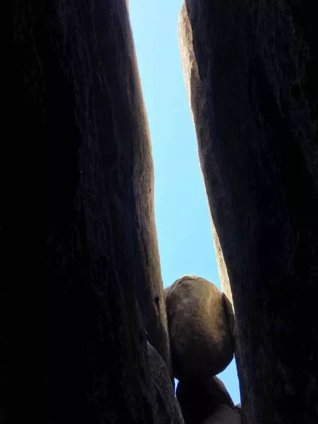 沿著山路蜿蜒向上。快到頂時,有一段路需要從很多巨石之間的洞穴縫隙里爬過,更有一線天等不易通過的險隘道路。