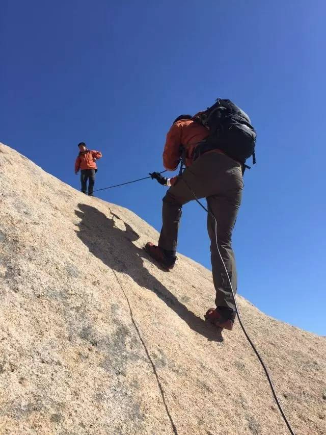 狹窄的縫隙,對身材有著很嚴苛的要求,胖子只能望而卻步!換言之,通過一線天上到天心池的,那都是 中國好身材哈!除了一線天,攀登的路也并不簡單,還需要繩索和隊友的配合。