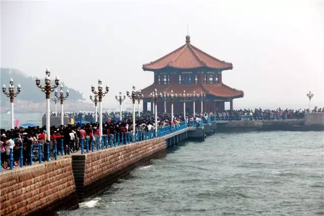 ????棧橋是青島最著名的景點之一,始建于清朝光緒十八年,長440米,寬8米,南端是半園形的防波堤,堤上建有回瀾閣,沿螺旋樓梯登上亭閣,可觀巨浪洶涌,飛閣回瀾,為青島十景之一。
