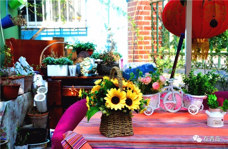 ????院子里各種植物繁茂,還有多肉。小屋里更是花的世界,你會(huì)想到一首歌——花房姑娘?;溃媚锩?,咖啡拉花也很美。