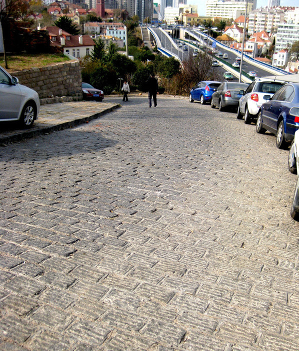 ????最懷舊也最美麗,馬牙石鋪成的路面沿小巷向上盤(pán)繞,錯(cuò)落有致的條石被磨蝕得油光發(fā)亮,春夏季節(jié),石縫間還有青草伸出頭來(lái),給老街平添幾分生氣,這就是極具青島特色的百年老街巷——波螺油子。