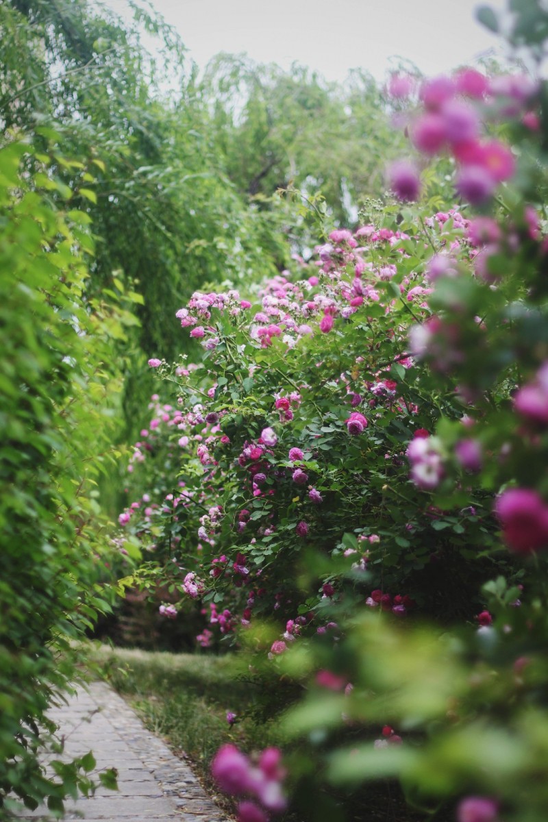 “人到無求品自高”。宋代李廷忠這樣形容薔薇花的品性:“玉女翠帷薰,香粉開妝面;不是占春遲,羞被群花見;纖手折柔枝,絳雪飛千片?!贝簛淼降臅r候所有的花兒都爭艷去了,只有這薔薇與月季才姍姍來遲。