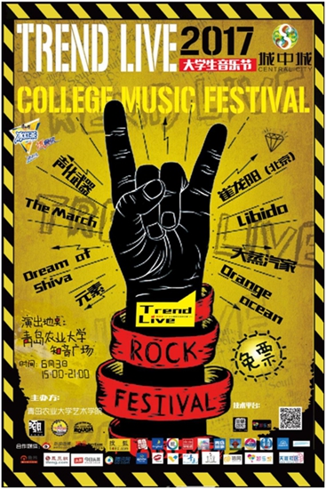 ????Trend Live大學(xué)生搖滾音樂節(jié)首站將在2017年6月3日15:30-21:00在青島農(nóng)業(yè)大學(xué)虹子湖畔知音廣場上演,整個青島的音樂新勢力都將匯聚于此,城中城購物廣場與你共同掀起一波音樂新熱潮! (通訊員 于米花)