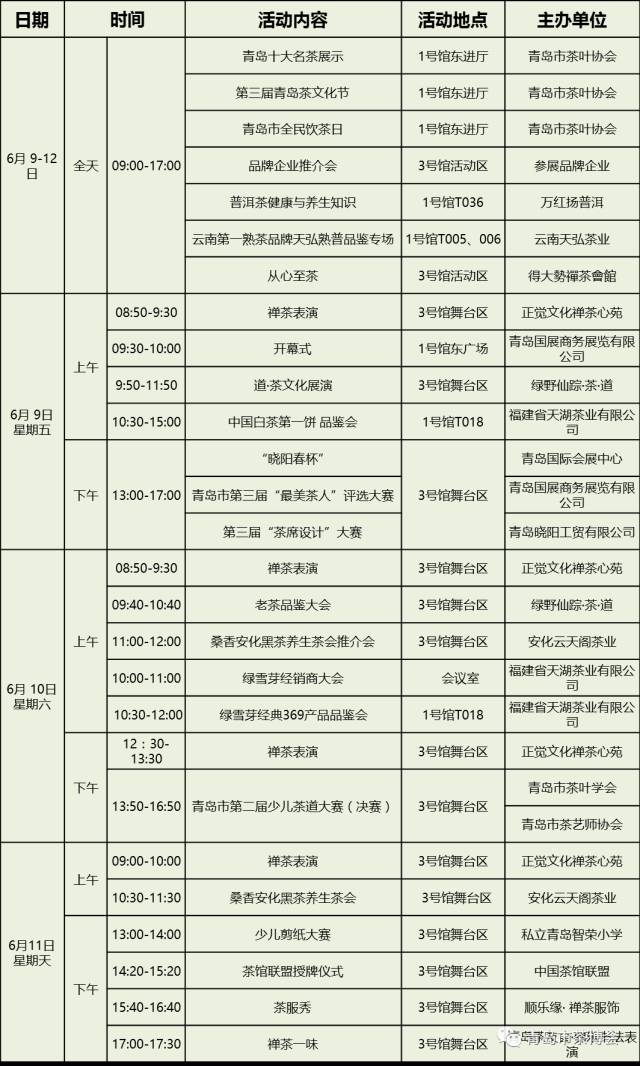 ????本屆茶博會(huì)為期4天,免費(fèi)參觀: