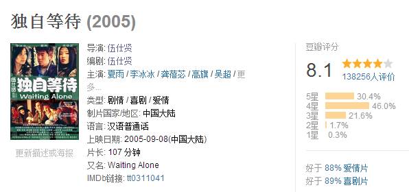 ????一方面,他曾執(zhí)導過的都市愛情片,《獨自等待》將在六個城市重映。