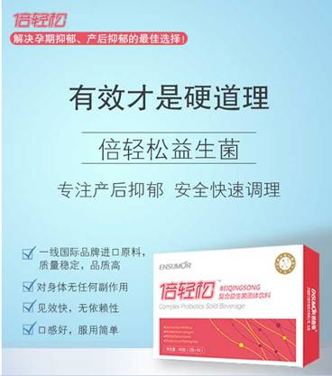 倍輕松復(fù)合益生菌是一款專門針對(duì)產(chǎn)后抑郁研發(fā)的產(chǎn)品,在國內(nèi)尚屬獨(dú)家產(chǎn)品。倍輕松的瑞士乳桿菌和長雙歧桿菌等有益菌,能夠修復(fù)胃腸屏障,阻止致病菌、抗原的進(jìn)入并引發(fā)炎癥,通過胃腸迷走神經(jīng)感覺纖維直接與中央神經(jīng)系統(tǒng)通信,在神經(jīng)遞質(zhì)層面和功能上進(jìn)行改變,調(diào)節(jié)五羥色胺和多巴胺的含量,能有效消除負(fù)面消極影響,幫助增強(qiáng)記憶及塑造積極心態(tài),從而有效調(diào)理產(chǎn)后抑郁!