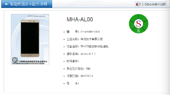 ????Mate 9獲電信終端產(chǎn)業(yè)協(xié)會(huì)智能終端安全能力評(píng)測(cè)五級(jí)認(rèn)證