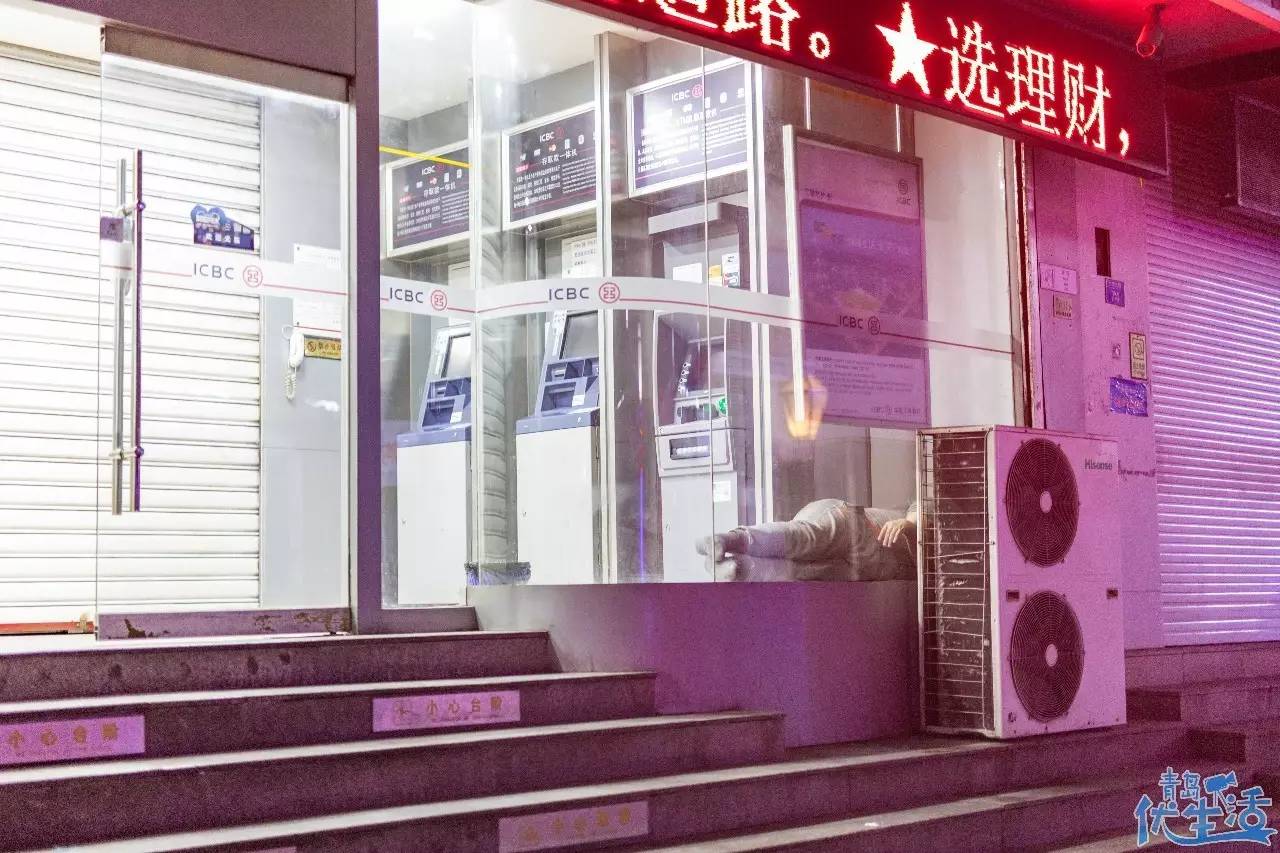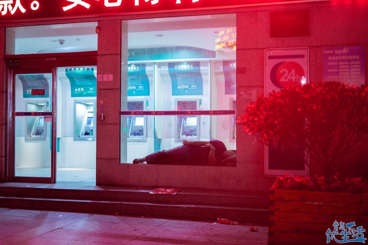24小時的自助銀行里,總會有人在里面和衣而睡,甚至沒有一張草席。這個城市是包容的,有他們的棲息之所;這座城市也是心酸的,孤獨(dú)的人在四處流浪,在黑夜里尋求一絲慰藉。