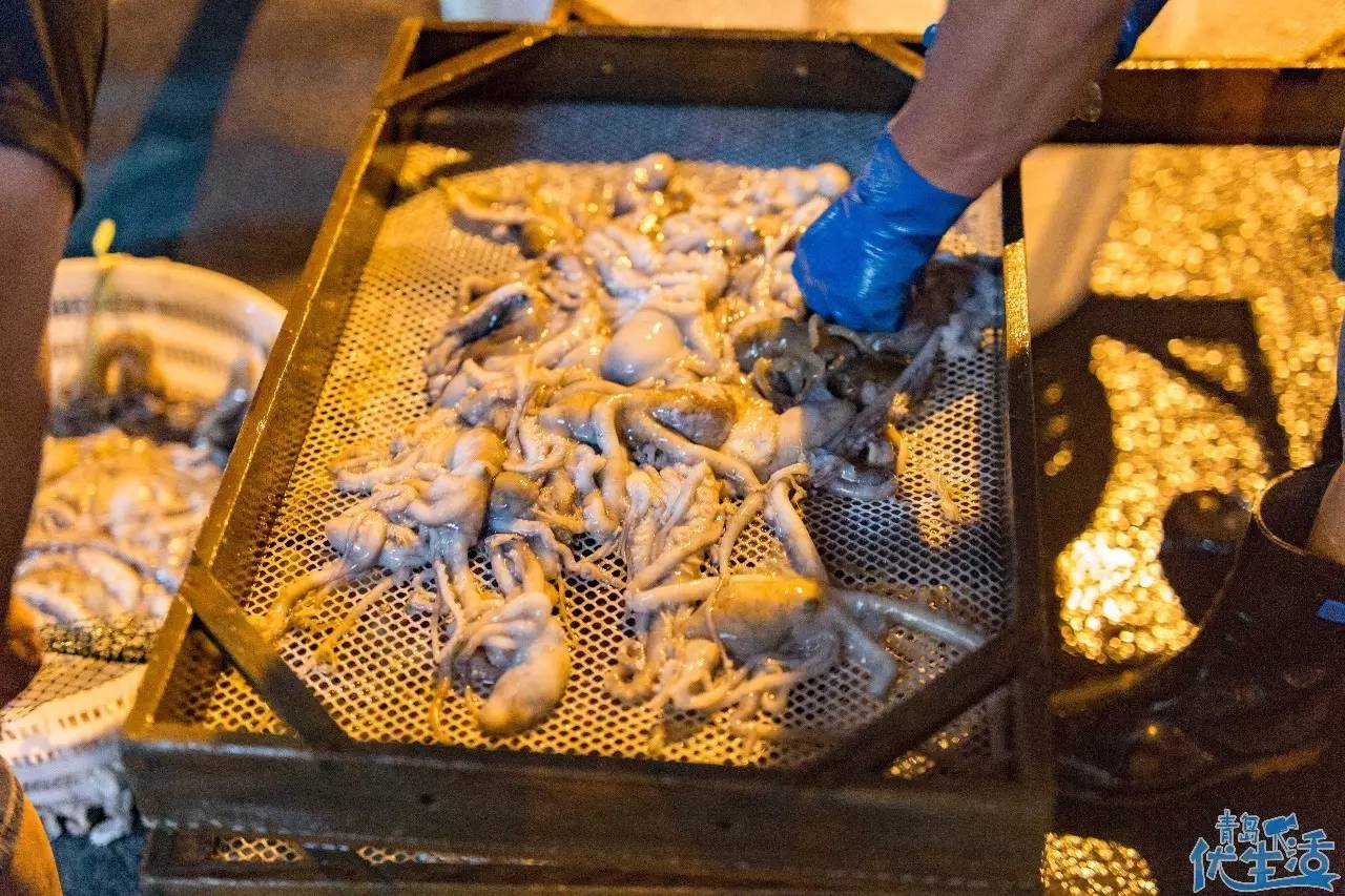 還有這樣一層一層卸在街頭的八爪魚和海鰻,張牙舞爪的做著最后的反抗。老板拿起一只說,“你看看這八爪魚,看著比昨天還新鮮,質(zhì)量多好!”再過一個小時,這里就要支起攤子,響起清晨第一嗓叫賣聲了。