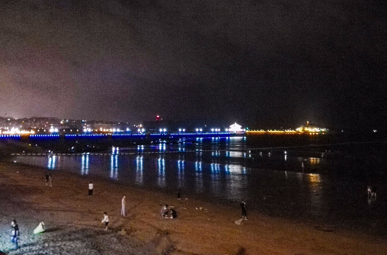 見慣了白天熙來攘往、滿滿是人的棧橋。夜晚的它,安靜,帶著點(diǎn)神秘。
