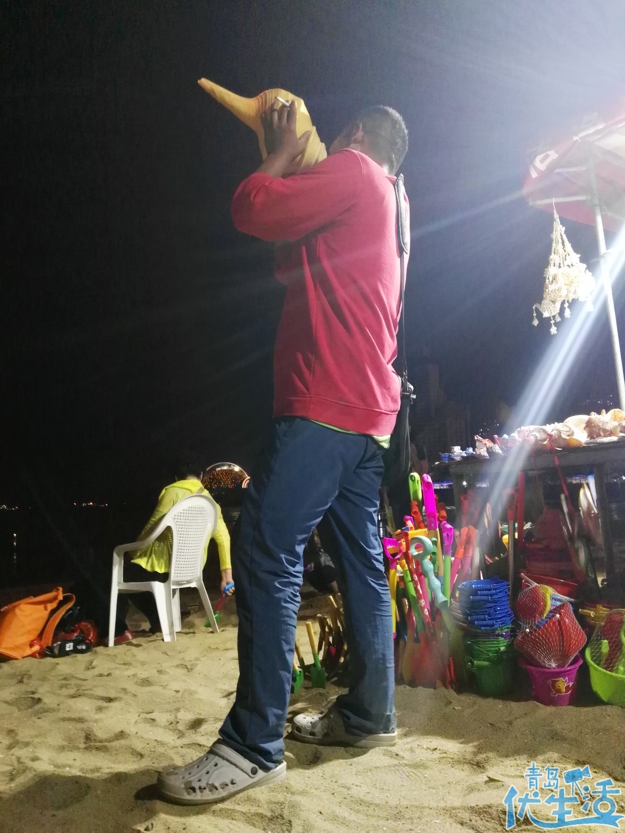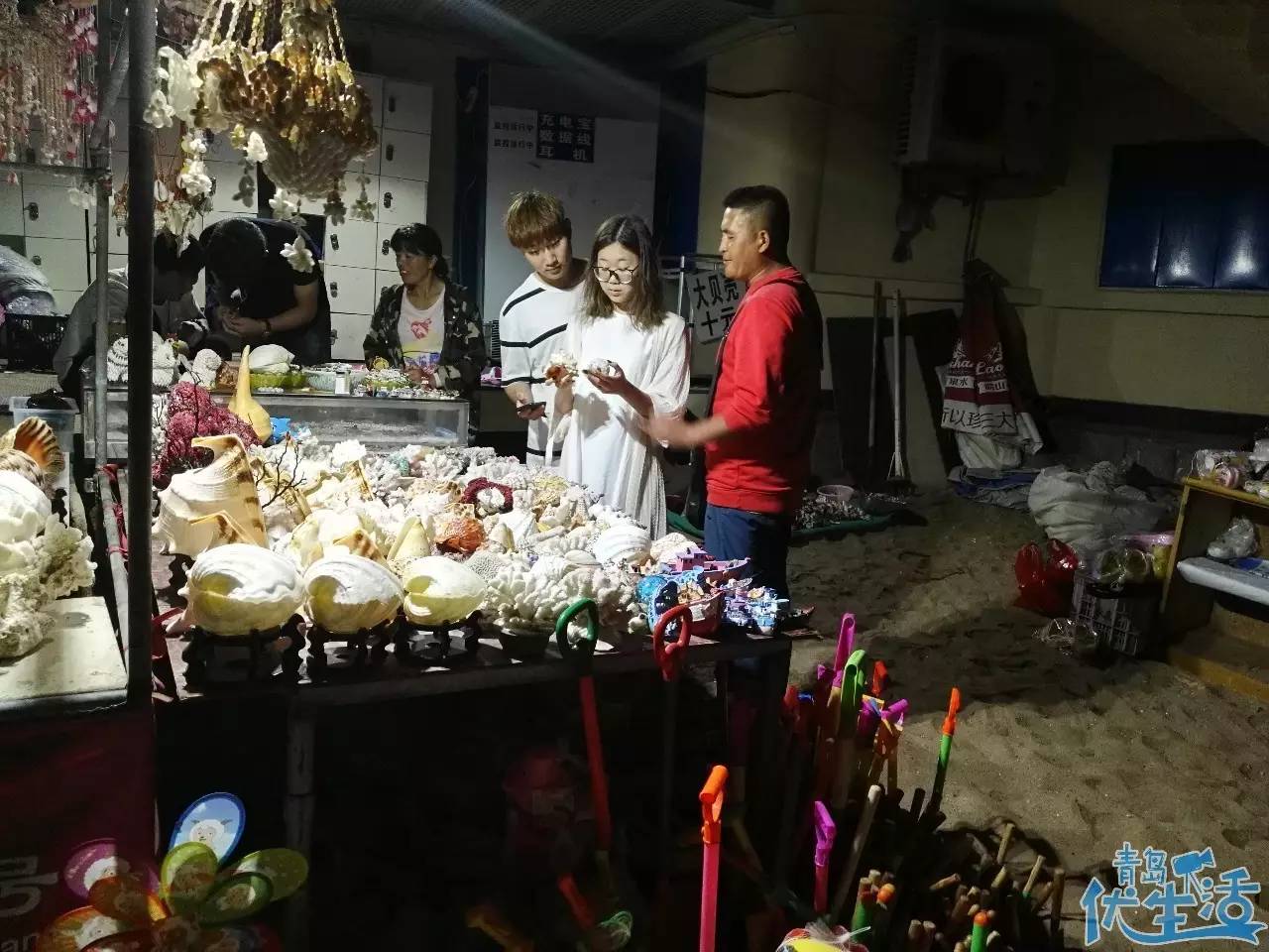 相隔不遠(yuǎn),就在棧橋邊的沙灘上,彭師傅還在忙著招呼生意。他干這行已經(jīng)10年了,08年來青島時,就像打游擊戰(zhàn)一樣,每天都換地方。等到2011年開了自己的店,在這賣貝殼,一賣就是7年。