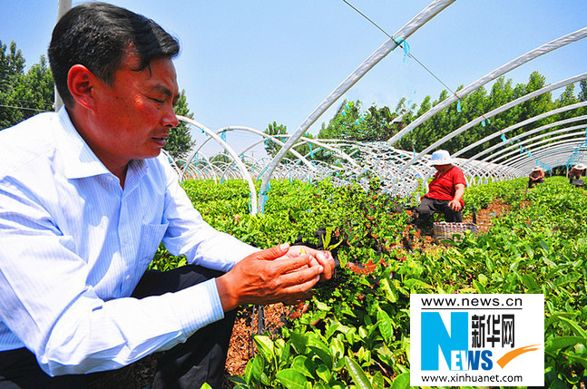蘇慶亮生前在茶園察看泰山極頂茶生長情況。