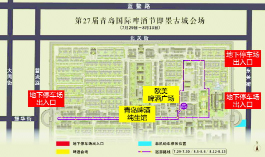 ????A:啤酒節(jié)期間(7.29~8.13),私家轎車可從東關街(兩處出入口)、營流路(一處出入口)進入地下停車場停車;摩托車、電動車、自行車可停放于東廣場南側指定區(qū)域內。