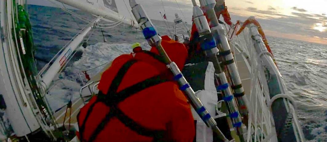 然而并不是一切都按照計劃進行的,他報告補充說:“我們有段行駛是非常令人興奮的,白天的時候行進了不少海里,但是傍晚的時候,球帆把前支索給蓋上了,我一開始是打算在日落之前就把球帆降下來的,并不是讓它直接掉落在前甲板上,影響了其他索具的操作,真沒想到會是這樣?!?/p>