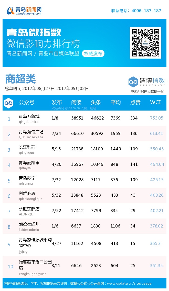 青島微指數(shù)微信影響力排行榜