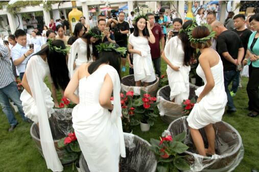 “踏漿”是一種慶祝葡萄豐收的儀式,起源于歐洲葡萄酒廠的傳統(tǒng)葡萄酒釀造方法。赤腳將葡萄踩碎使之成漿,是手工破碎葡萄的一種方式,也是一種傳統(tǒng)而古老的葡萄酒釀造方式,可以釀制出味美香醇的葡萄酒?;顒蝇F(xiàn)場,為了更好的讓大家體會到古代傳統(tǒng)的釀酒工藝,華東葡萄酒公司以葡萄仙子為原型將整個踏漿釀酒還原,讓在場的每一位親眼見證了葡萄酒文化的發(fā)展史。