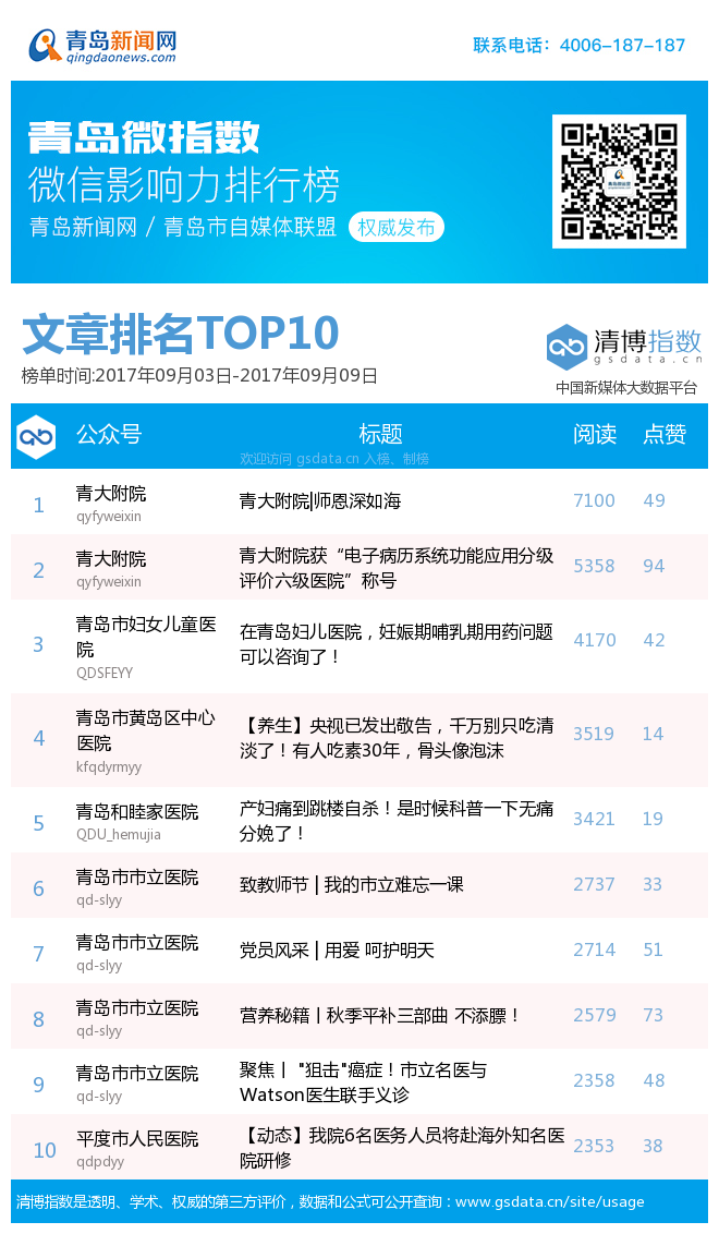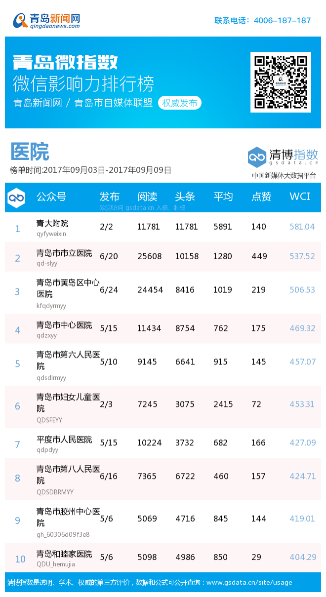 ★最有影響力獎(閱讀數(shù)最多):青島市市立醫(yī)院