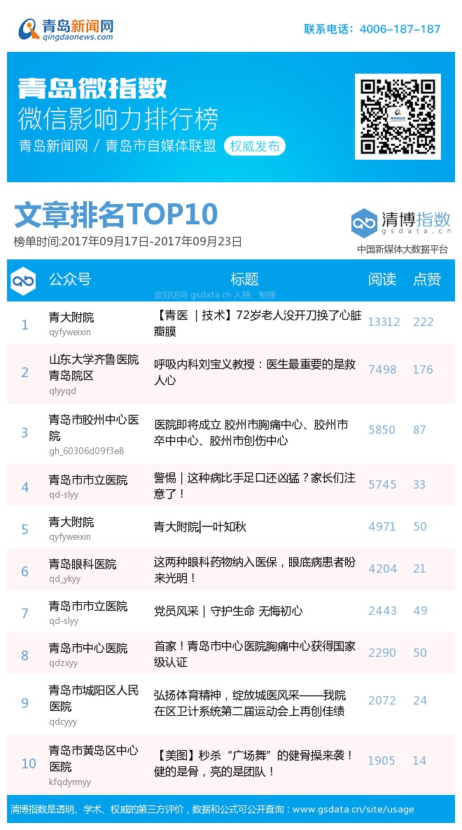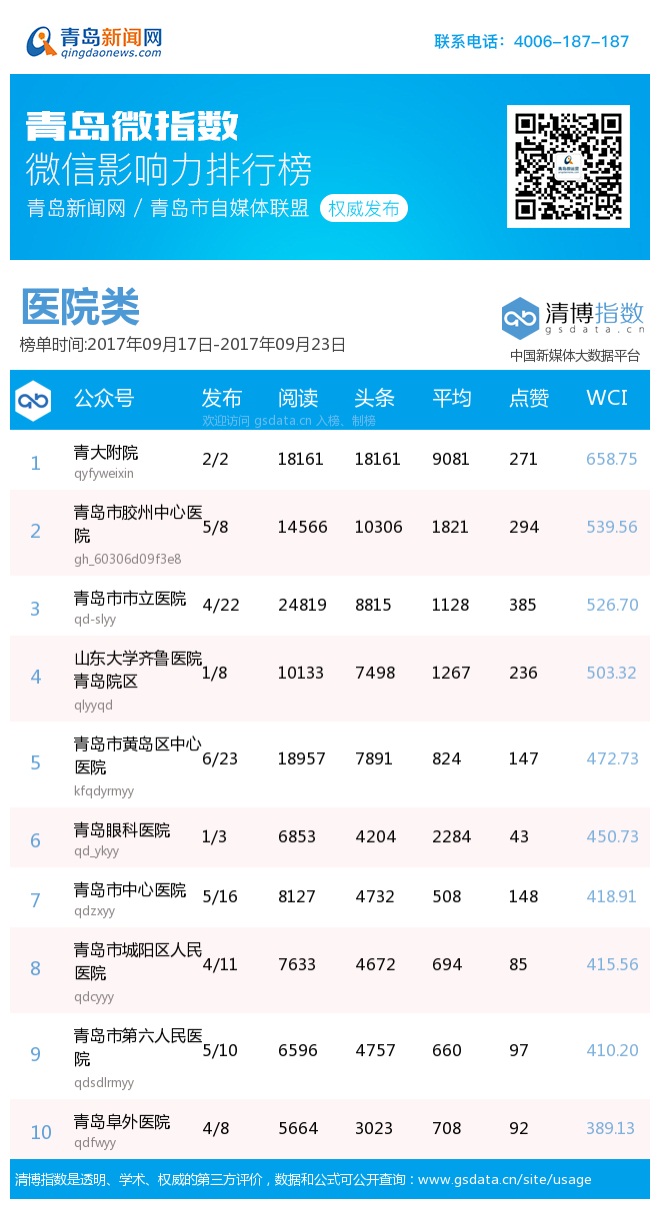 ★最有影響力獎(閱讀數(shù)最多):青島市市立醫(yī)院