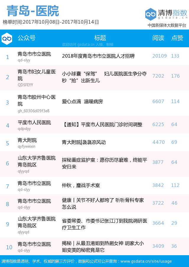 ★最有影響力獎(jiǎng)(閱讀數(shù)最多):青島市市立醫(yī)院