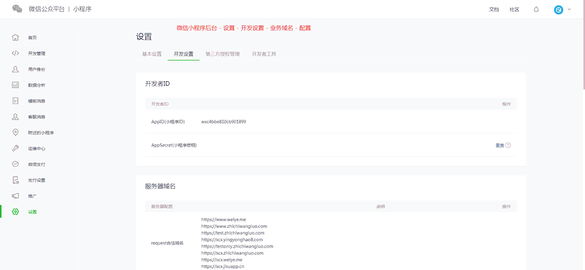 每個(gè)小程序賬號(hào)最多只能配置20個(gè)域名