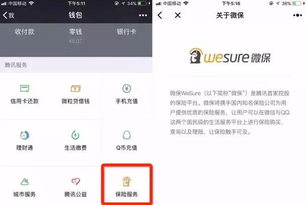 騰訊在微信錢包以及QQ錢包上線保險服務(wù)板塊,并在一定范圍內(nèi)進(jìn)行測試。