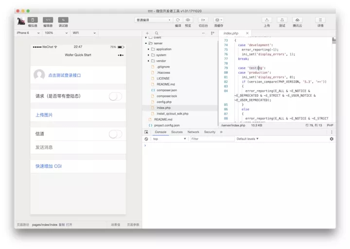 此次新能力更新中,微信終于讓開發(fā)者工具支持「全世界最好的語言」PHP。同時(shí),開發(fā)者工具中的騰訊云集成,也添加了 PHP支持。