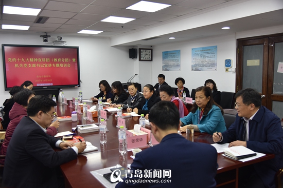 青島新聞網(wǎng)11月23日訊(記者 于泓)黨的十九大勝利閉幕以來(lái),青島市教育系統(tǒng)迅速行動(dòng),走在前列,在機(jī)關(guān)、學(xué)校、課堂深入組織學(xué)習(xí)宣講,不斷掀起學(xué)習(xí)宣傳貫徹黨的十九大精神的熱潮。