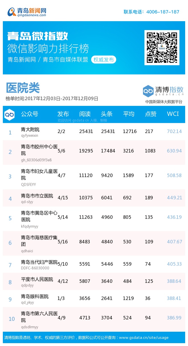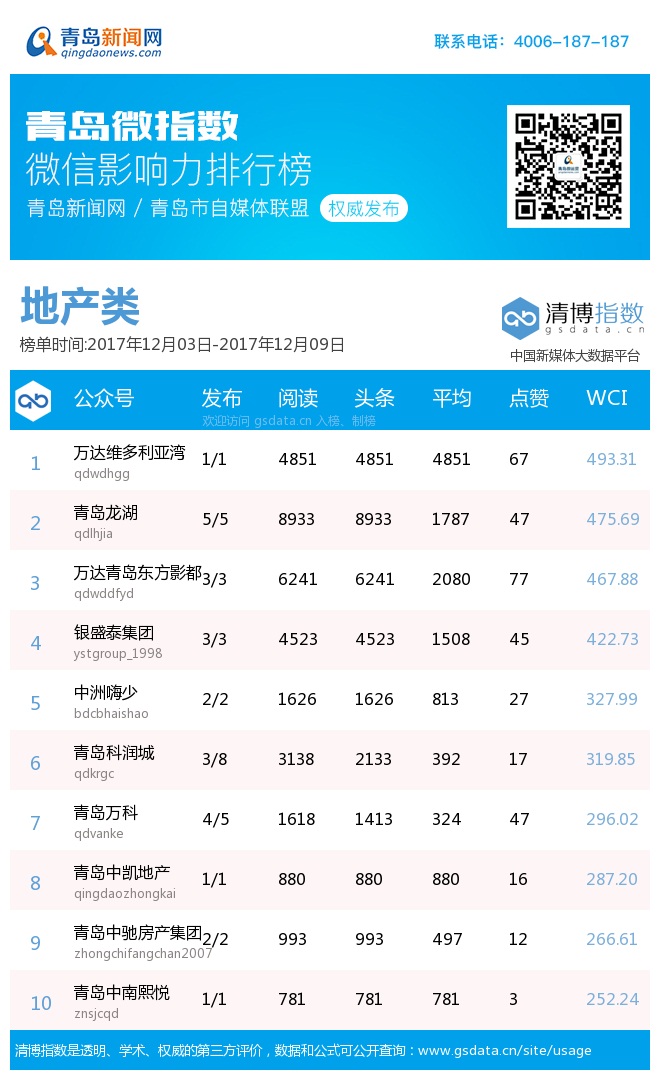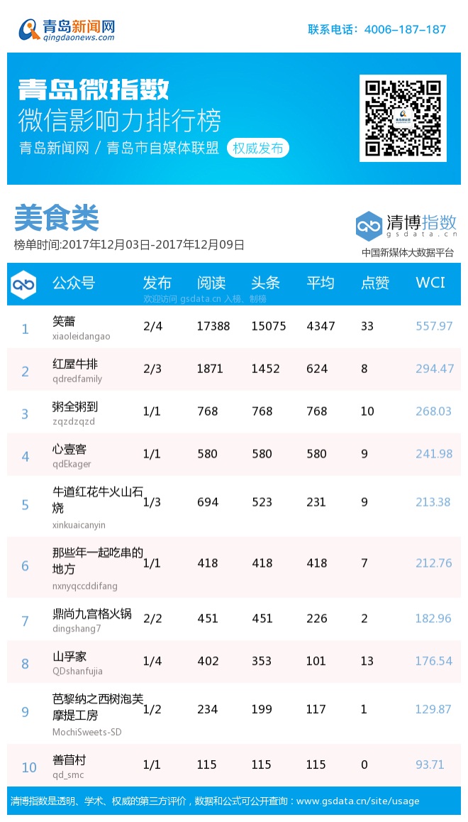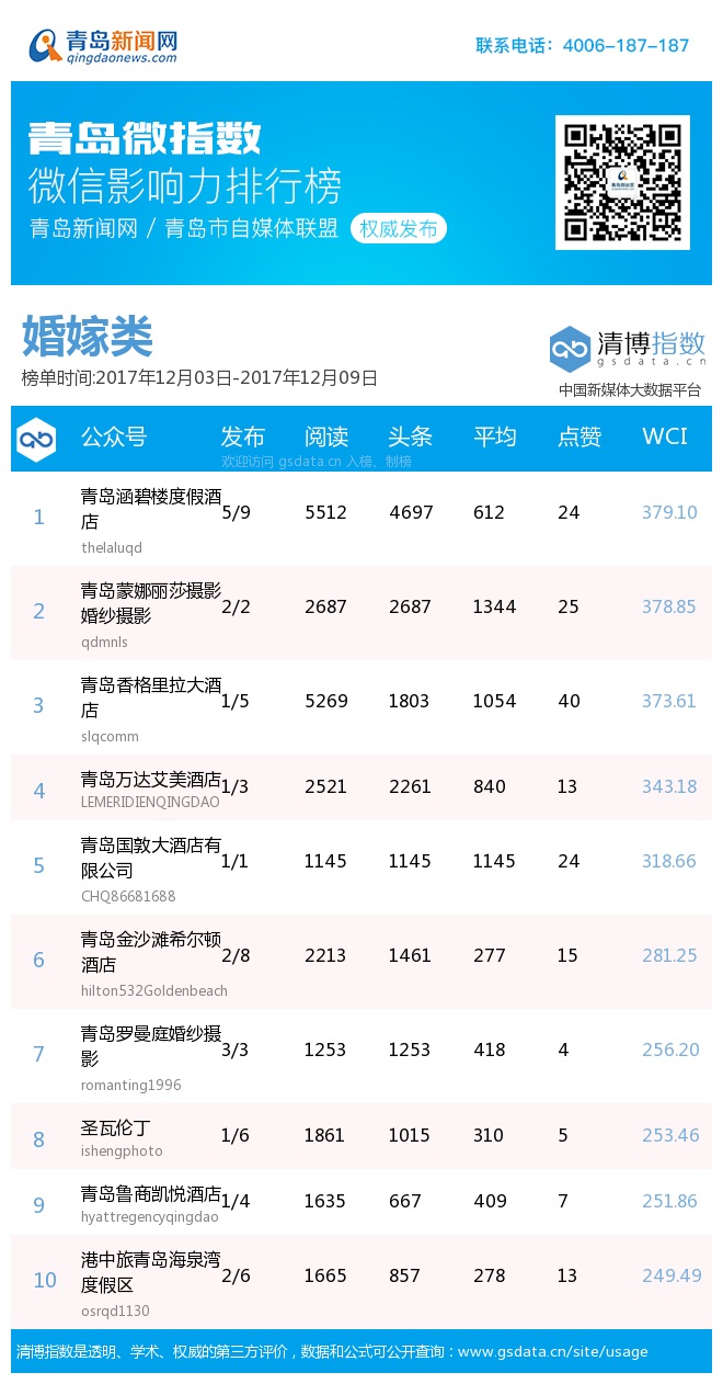 3、本次榜單收錄了青島13個行業(yè)微信公眾號,如您的賬號暫未收錄,可聯(lián)系4006-187-187。