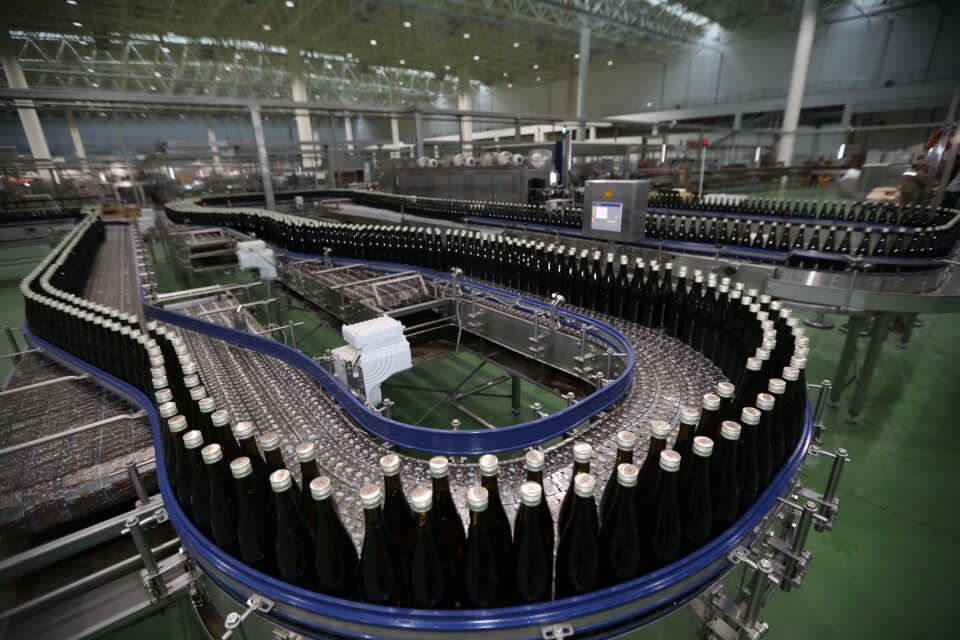 張裕國際葡萄酒城灌裝車間內(nèi)的白蘭地灌裝線。