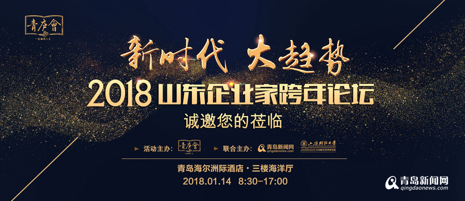 青島新聞網(wǎng)12月28日訊(記者 劉倩倩)當下,中國經(jīng)濟轉型升級,一帶一路大戰(zhàn)略揚帆起航,新消費、新制造、新零售、新金融已成必然趨勢。這就要求企業(yè)家們既要有歷史眼光,又要具有前瞻性與創(chuàng)造性思維方式;回到原點重新出發(fā),思索商業(yè)本源價值。在此背景下,由山東青廬會主辦,青島新聞網(wǎng)和上海財經(jīng)大學青島財富管理研究院聯(lián)合主辦的“新時代 大趨勢”2018山東企業(yè)家跨年論壇應運而生。