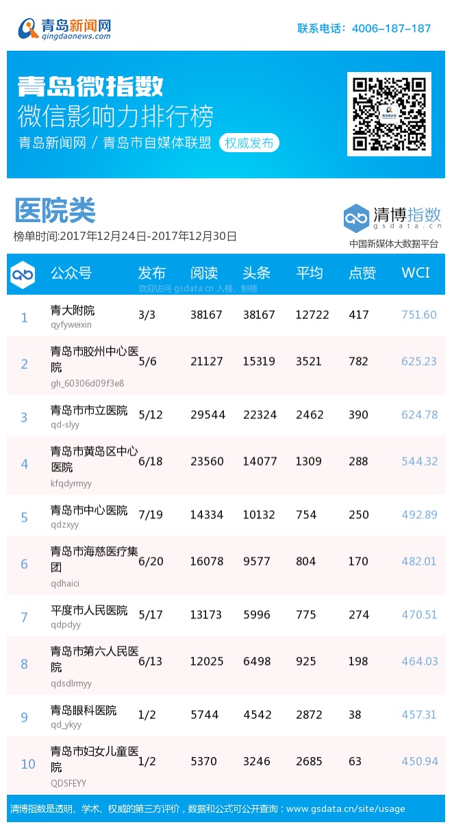 ★最有影響力獎(jiǎng)(閱讀數(shù)最多):青島市市立醫(yī)院