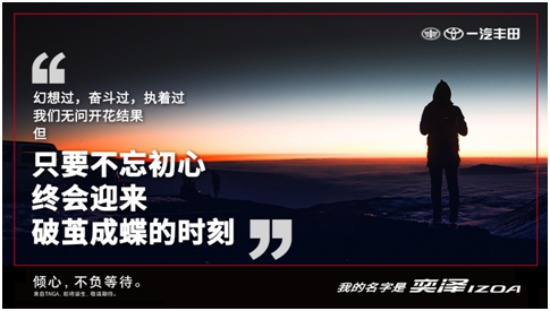 生活總會遇到許多無法言表的窘境。但我們堅信,美好的事情即將發(fā)生。就像奕澤IZOA所寓意的那樣,行隨心動,和奕澤IZOA一起砥礪前行,追求幸福和年輕向上的力量。因為,傾心,終將不負(fù)等待!
