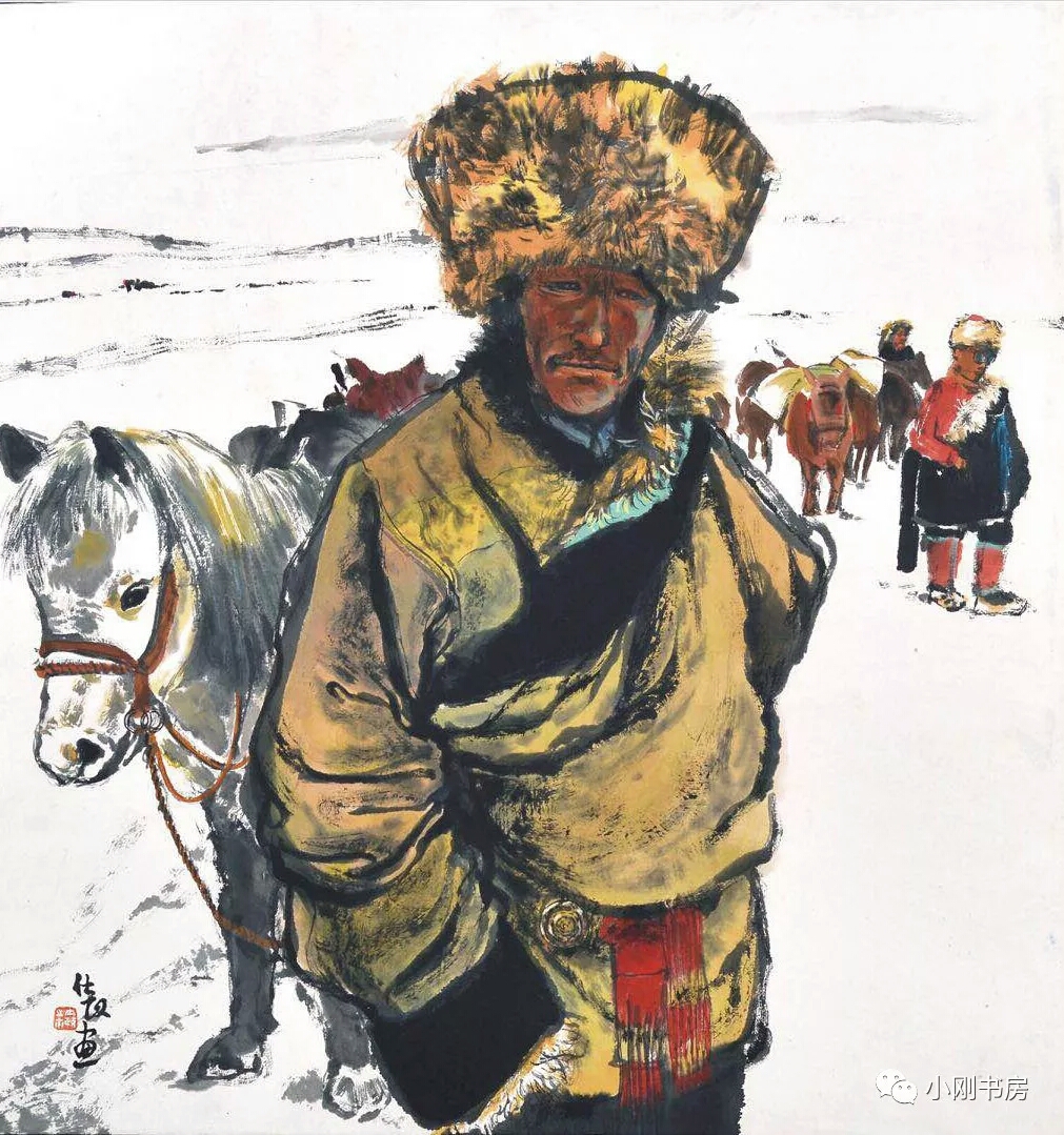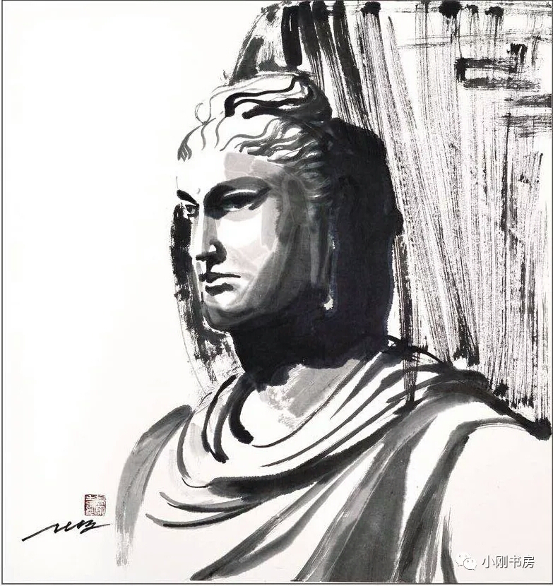 觀虛白作品,當以水墨為主,兼繪油畫水彩,獨具山水風景。其人物以宗教人物為最,這得益于他游歷“諸宗翹楚,一教首班”的五臺山、"五朝恩賜無雙地,四海尊崇第一山"的普陀山、“秀甲天下”的峨眉山、“香火鼎盛”的九華山和西安“法門寺”等宗教之地,其人物又以眼睛最為傳神:或慈悲為懷、或空洞天下、或蔑視眾生、或叱咤鬼怪。其他人物又以求生、尋知、迷離、堅韌、熱愛、慈祥的眼睛,透出生命的內心愿想,構成一幅千年不變的眾生相。