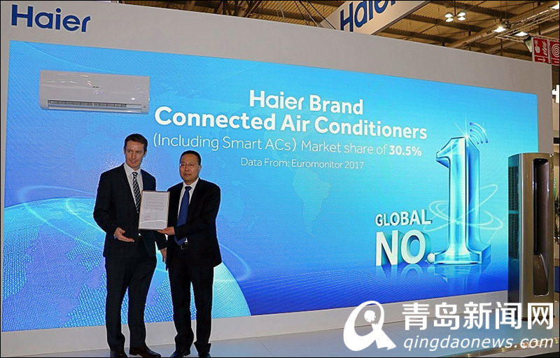 意大利時(shí)間3月13日,2018米蘭國際供暖、空調(diào)、制冷、再生能源及太陽能博覽會(huì)(MCE)正式開幕。在MCE上,世界權(quán)威市場調(diào)研機(jī)構(gòu)歐睿國際(Euromonitor)調(diào)研總監(jiān)David Cleveland現(xiàn)場為海爾空調(diào)頒發(fā)認(rèn)證--按2017年度零售市場銷量臺(tái)數(shù)計(jì),海爾是位列全球第一的互聯(lián)空調(diào)(包括智能空調(diào))品牌,其所占市場份額為30.5%。這也是海爾連續(xù)2年位居全球互聯(lián)空調(diào)(包括智能空調(diào))銷量榜單第一名。同時(shí),海爾憑借自主品牌全球化也成為歐洲中國空調(diào)第一品牌。