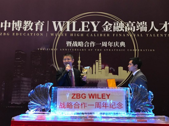 2017年12月10日,中博教育與WILEY在上海聯(lián)合舉辦“金融高端人才峰會”。在峰會上,中博教育CEO陳鋒(左),WILEY戰(zhàn)略與運(yùn)營總監(jiān) Daniel Suen(右)為雙方戰(zhàn)略合作一周年紀(jì)念互贈禮品。