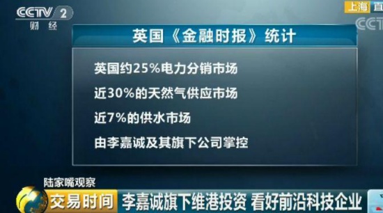英國(guó)《金融時(shí)報(bào)》統(tǒng)計(jì)說(shuō),英國(guó)約25%電力分銷(xiāo)市場(chǎng)、近30%的天然氣供應(yīng)市場(chǎng)、近7%的供水市場(chǎng)由李嘉誠(chéng)及其旗下公司掌控。