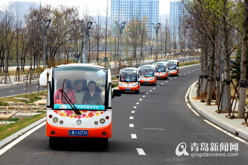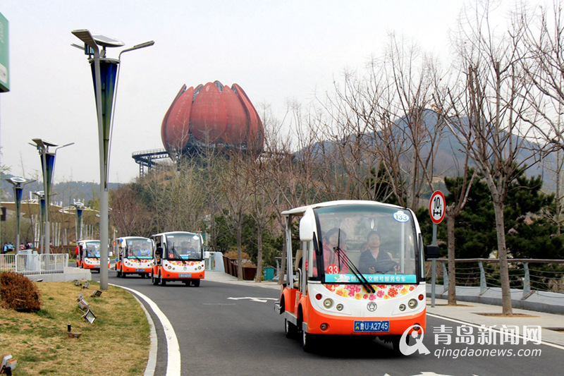 青島世博園免費派出了觀光車接送孩子們