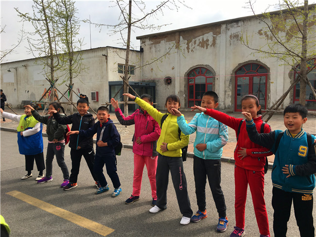 上午9時(shí)半,孩子們?cè)谥驹刚呃蠋煹膸ьI(lǐng)下,在青島紡織博物館門(mén)口的空地上做起了熱身的互動(dòng)游戲。通過(guò)歡樂(lè)的互動(dòng)游戲,小志愿者們和外來(lái)務(wù)工人員子女迅速消除了陌生感并加深了了解。