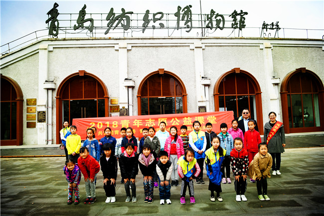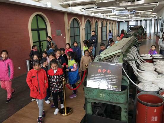 在等待圍巾晾干的同時(shí),孩子們?cè)谕躔^長(zhǎng)的帶領(lǐng)下,參觀了青島紡織博物館。
