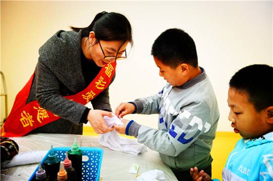非物質(zhì)文化遺產(chǎn)是我們的先輩人民在生產(chǎn)和生活藝術(shù)中智慧的結(jié)晶,是歷史長(zhǎng)河中璀璨的遺存。4月14日,由共青團(tuán)青島市委、青島福彩中心和青島新聞網(wǎng)聯(lián)合主辦的“2018青年志愿者公益課堂”第二站在市北區(qū)四流南路80號(hào)的青島紡織博物館舉行。多個(gè)志愿者單位及家庭與市北區(qū)遵義路小學(xué)三年級(jí)的20位外來(lái)務(wù)工人員子女一起,跟隨志愿者老師,親自動(dòng)手把白圍巾扎染出美麗的顏色,體驗(yàn)非物質(zhì)文化遺產(chǎn)的魅力,了解其中的歷史韻味與意義。扎染課堂結(jié)束后,孩子們還在志愿者的帶領(lǐng)下參觀了青島紡織博物館,在寓教于樂(lè)的課堂中,孩子們既收獲了知識(shí)更收獲了快樂(lè)。