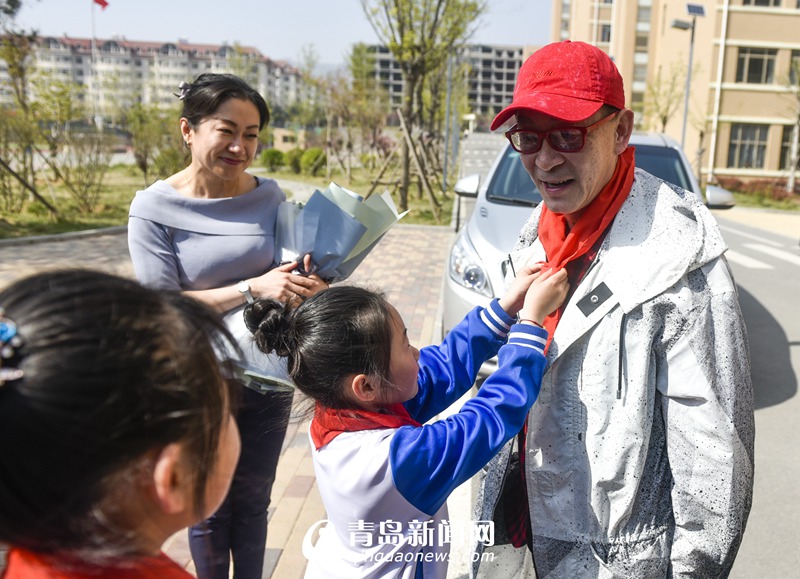 小朋友為六小齡童佩戴紅領(lǐng)巾