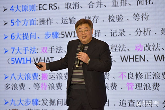 他總結(jié)了實(shí)現(xiàn)精益生產(chǎn)的方法,即一大準(zhǔn)則——?jiǎng)幼鹘?jīng)濟(jì)原則;兩大支柱——IT與自動(dòng)化;“三現(xiàn)主義”——現(xiàn)實(shí)、現(xiàn)地、現(xiàn)物;四大原則——取消、合并、重排、簡(jiǎn)化;五大方面——操作、運(yùn)輸、儲(chǔ)存、檢驗(yàn)、等待;以及六大提問、七大手法、八大浪費(fèi)、九大步驟?!捌渲胁粌H會(huì)涉及到目視化、班組管理、價(jià)值流管理、放錯(cuò)技術(shù)等精益工具的使用,還包括精益制度、精益文化的建設(shè)?!睆埥淌诒硎尽?/p>