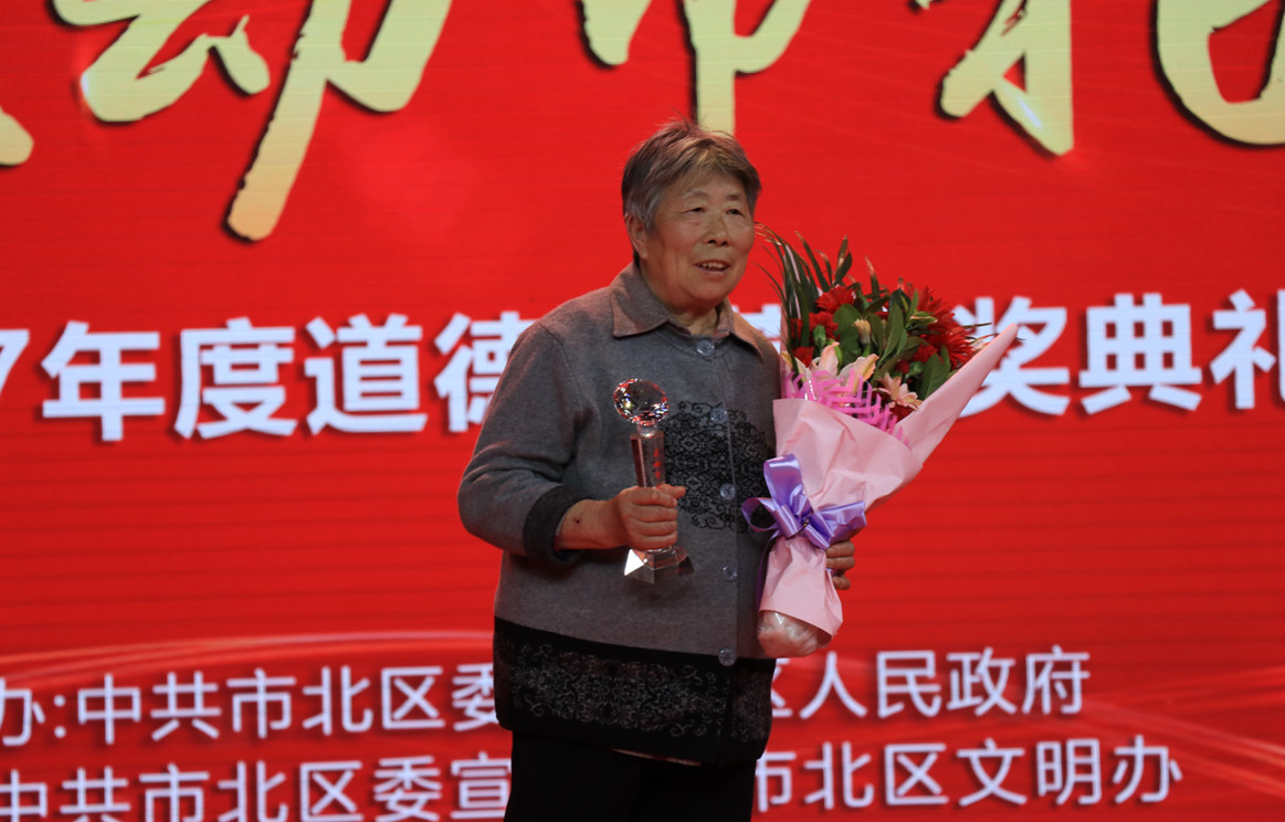 頒獎(jiǎng)詞:人群中,她本是平常的古稀老人;病床前,她卻是傾盡全力照顧兒媳的母親!黑夜里,曾淚灑衣襟,磨難中,卻從未放棄!平凡大愛(ài)守護(hù)真情,大城小事溫暖人間!