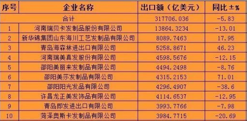 細(xì)分到發(fā)制品企業(yè),河南瑞貝卡依舊穩(wěn)坐第一名寶座;新華錦集團(tuán)山東海川緊排第二;青島海森林本次擠入第三名。