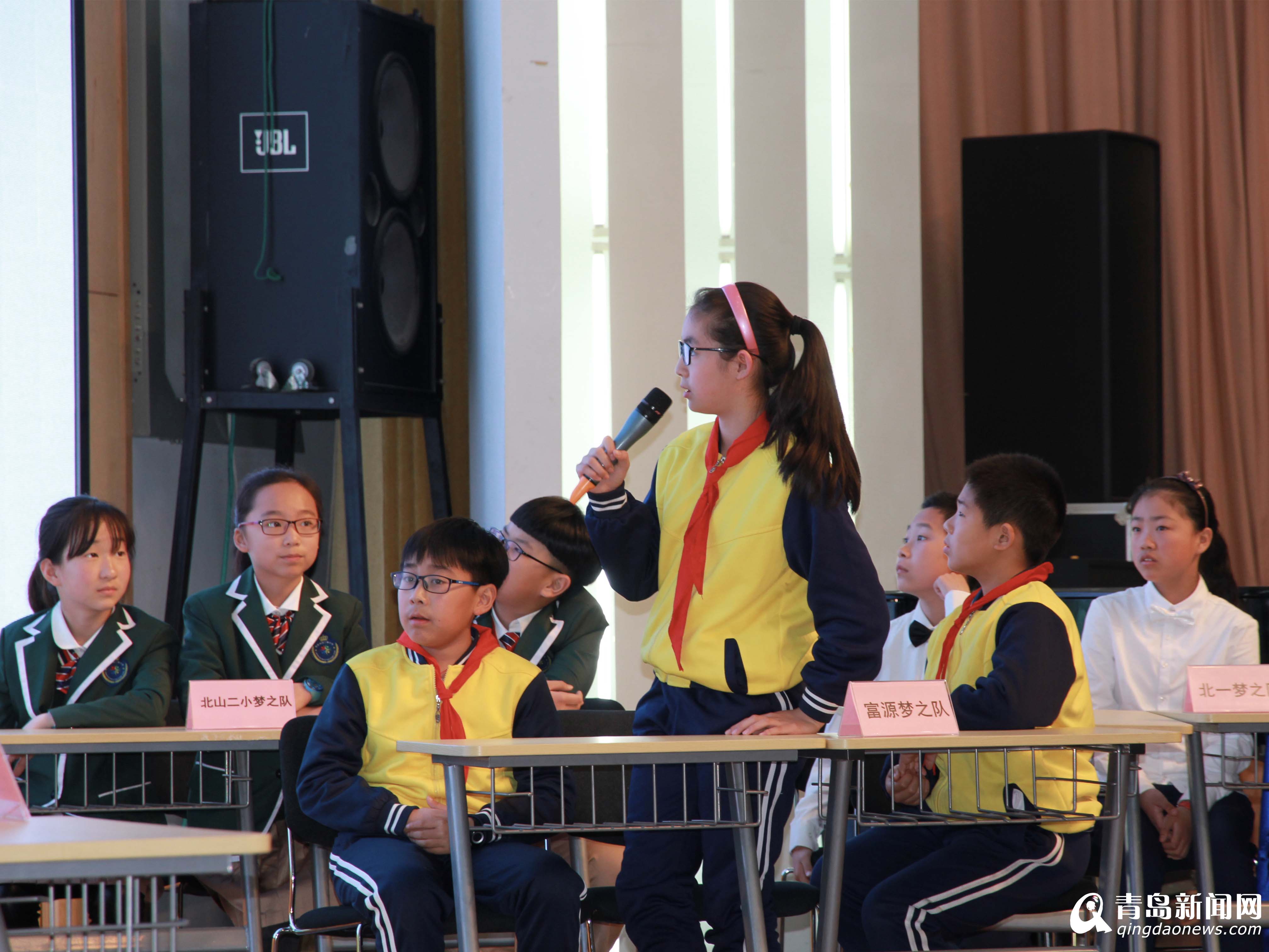 4月23日是“世界讀書日”,當(dāng)天上午,青島市少兒詩詞大賽在詩朗誦《將進酒》中拉開帷幕。隨后,來自青島北仲路第一小學(xué)、青島北仲路第二小學(xué)、青島北山二路小學(xué)、青島鄭州路小學(xué)和青島富源路小學(xué)五所學(xué)校以及市圖書館通過預(yù)賽選出的選手組成的六個比賽隊伍展開了詩詞大賽決賽的激烈角逐。
